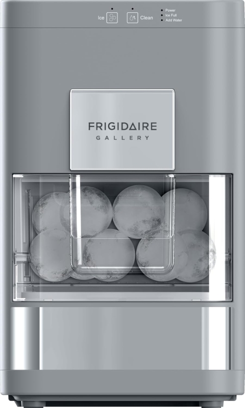 Crafted from durable plastic, the machine measures 16.75″D x 9.76″W x 16.26″H and weighs 27 pounds. It includes an ice bin, scoop, and drip tray. Compatible with 115 volts, the Frigidaire EFIC240 ensures you can enjoy artisanal ice whenever you desire.