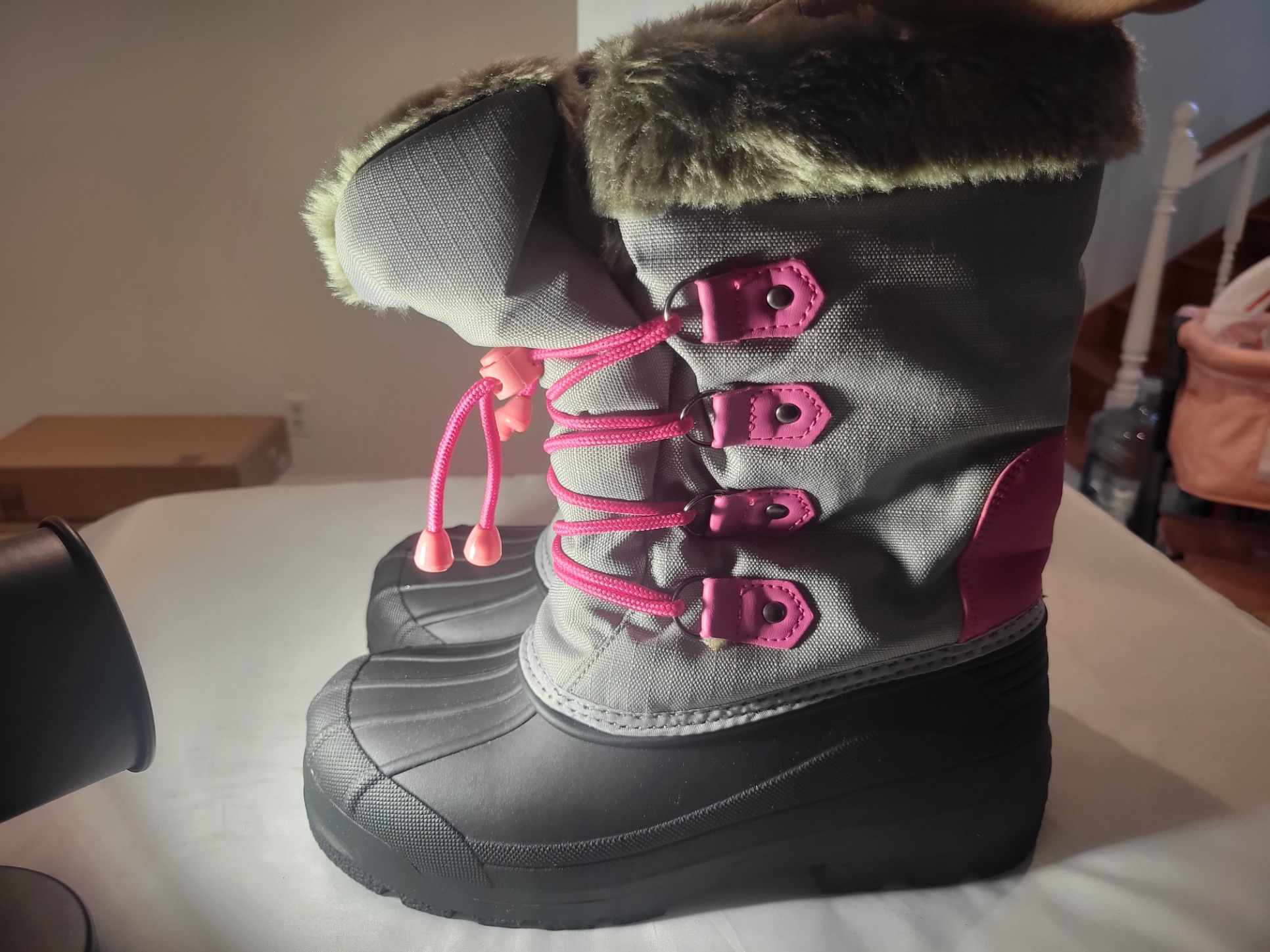 - Waterproof upper keeps feet dry during snowball fights and sledding.