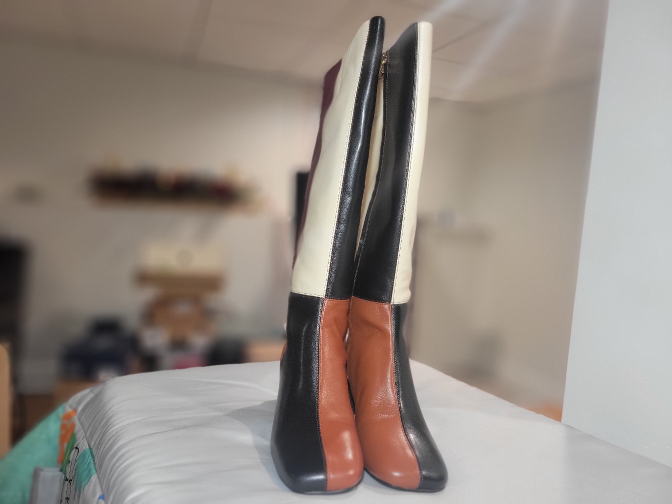Step out in style with the Oaklyn knee-high boots. Featuring retro colorblocking and a chic square toe, they’re perfect for elevating your look with midi dresses.